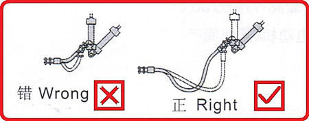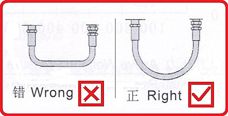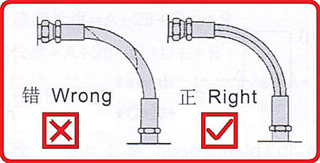 5、選用合適的接頭,使軟管的彎曲平面與運動方向在同一平面內(nèi),以避免扭曲。