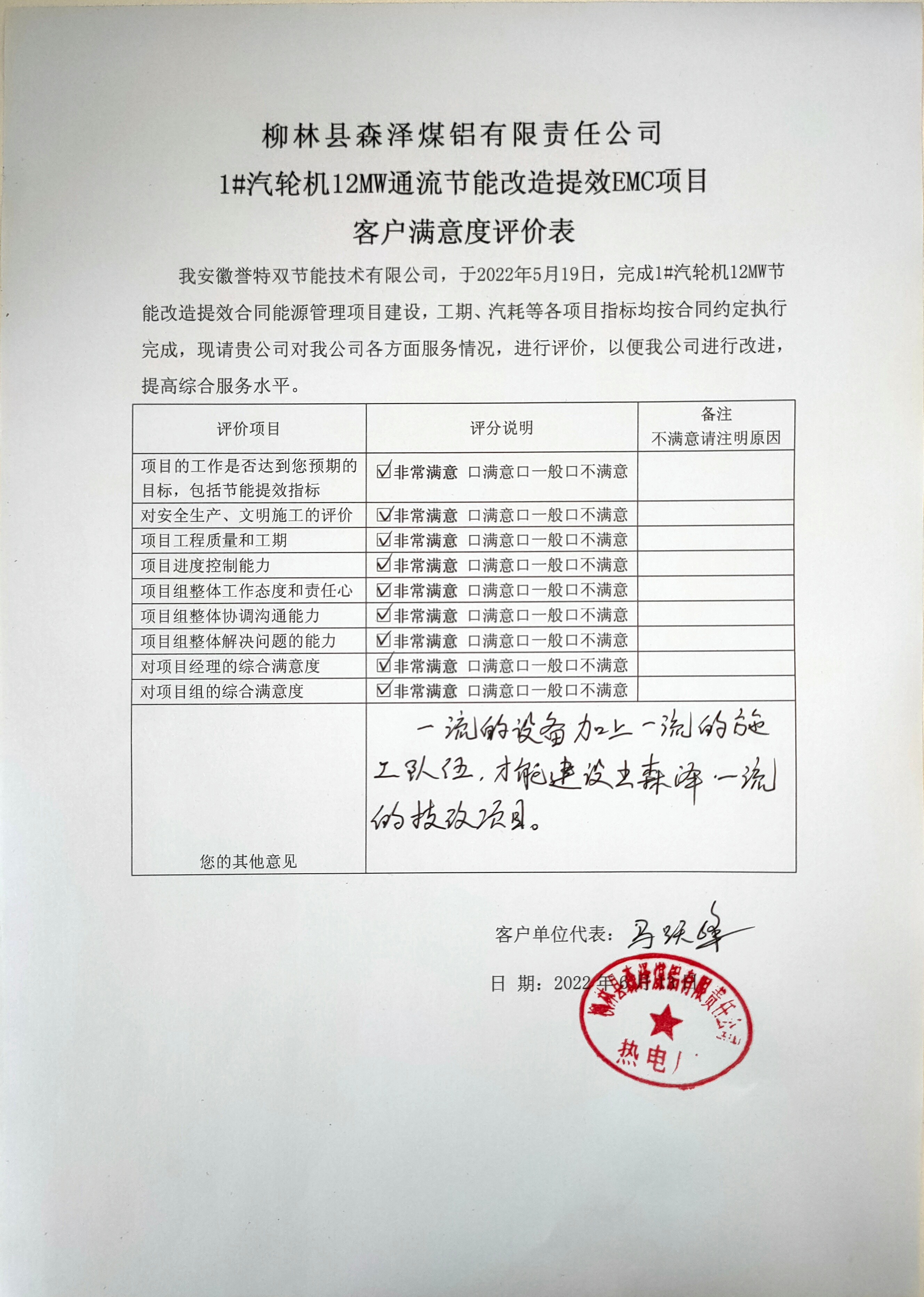 2022年5月29日,我公司全額投資改造實施的森澤集團1#機組12MW背壓式汽輪機合同能源管理項目通過工程驗收,節能提效比例達34.1%,年可創造節能經濟效益達1196.7萬元以上。